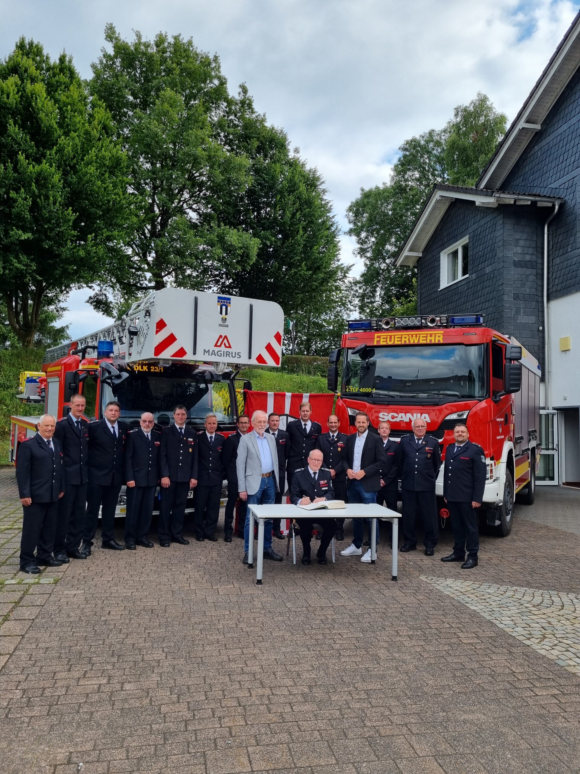 Es war ein bewegender Moment für ihn und seine Mannschaft: Karl-Friedrich Müller ist seit nun 20 Jahren im Amt des Wehrführers der Freiwilligen Feuerwehr Erndtebrück und durfte sich ins Goldene Buch der Gemeinde eintragen. KF, wie ihn alle nennen, hat die Feuerwehr zu dem gemacht, was sie heute ist: Eine starke Mannschaft, die unter optimalen Bedingungen einen enorm wichtigen Beitrag für die Sicherheit in der Gemeinde leistet.